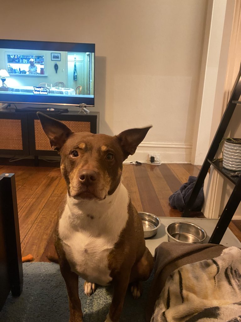 Hi! I'm Indra, I’m a young Staffy who’s still learning that the world can be