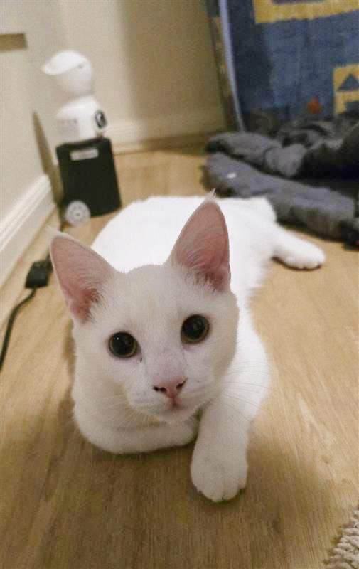 Meet Sugar Sugar is a gentle, soft-natured white cat with a quiet charm that slowly