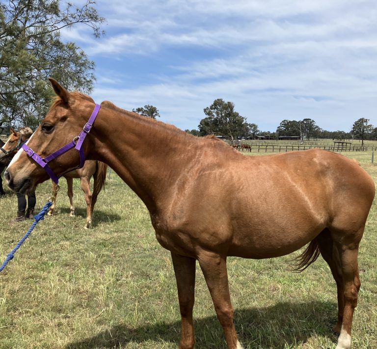 My name is Primrose, and I’m an 11-year-old chestnut Thoroughbred mare looking for a new home. Not much is known about my past, but I have a kind temperament and am ready for a fresh start with someone who can offer patience and understanding.