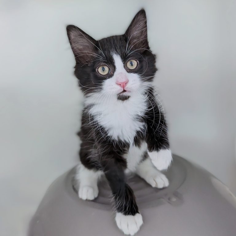 Hi, I’m Inky. I’m a male kitten, Domestic Medium Hair, and I’m 2 months old. I’m curious and playful, with an average energy level. I love a warm lap after a little exploration, soft toys, and finding sunbeams to nap in. I’m gentle and I take time to warm up to new people, but I’m friendly and affectionate once I know you.