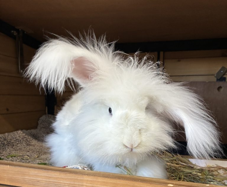 Wallace is a large, handsome white rabbit with a soft coat and an even softer personality. He’s the kind of bunny who wants to know what’s going on at all times. He’s highly food-motivated, just bring a few leafy greens or a healthy treat, and you’ll have his full attention. He’s also a big fan of chew toys and will happily keep himself entertained gnawing away, which is great for keeping his teeth healthy and his mind engaged.
