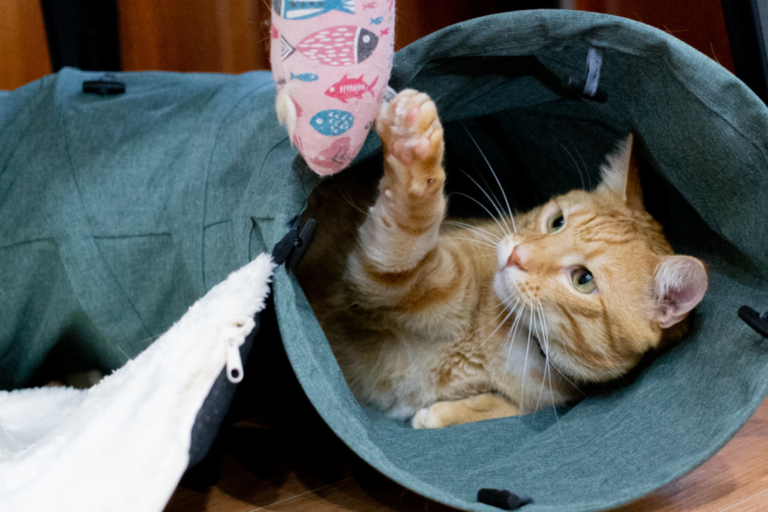 Play for cats is not just about fun; it’s essential for indoor cats’ physical and mental well-being. It helps them stay active, maintain a healthy weight, and prevent obesity-related health issues. Play also provides mental stimulation, alleviates boredom, and reduces stress and anxiety. It is a great way to keep kitty brains active and alert.