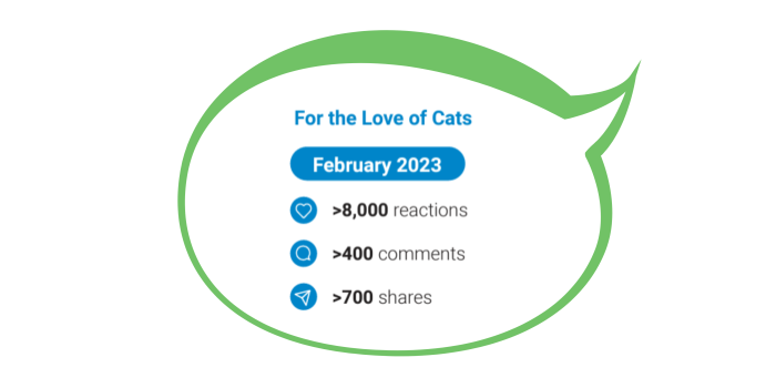 In FY22-23, the Keeping Cats Safe at Home reached more than 2,000,000 social media users. Engagement with, and the overall response to, our social marketing campaign has been overwhelmingly encouraging and positive.